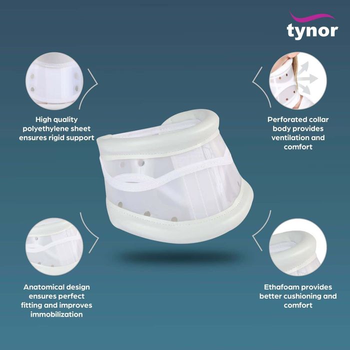 Хатуу хуванцар материал нь хөдөлгөөнийг сайтар хязгаарлана. Холгож нухахгүй, харшил үүсгэхгүй, агаар сайн нэвтрүүлдэг зөөлөн даавуун доторлогоотой .Өмсөж хэрэглэхэд хялбар, тав тухтай. Хүзүүний өндөрт тааруулан тохируулах боломжтой тохируулагчтай. Толгой, хүзүүний хөдөлгөөн хязгаарлах, дэмжих үйлчилгээтэй хүзүүний бэхэлгээ.